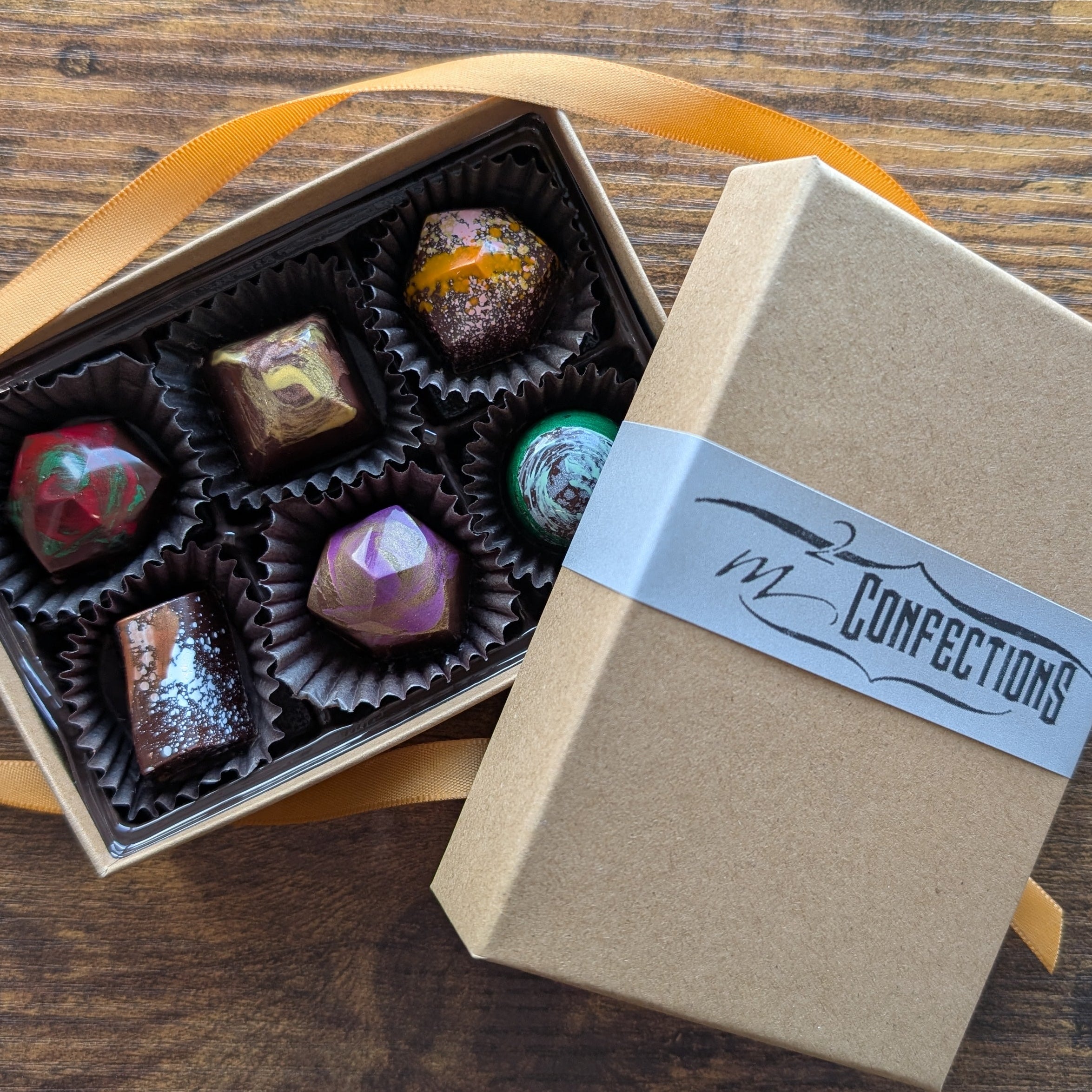 Our collection comes in a beautiful set up box with a hand tied bow attached. Every box also includes a QR code that links to the Flavors page of our website, with pictures and descriptions of every flavor available! If you need more specific ingredient lists, please reach out to us directly.